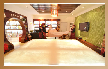 1.装修风格别具特色,中式的装修蕴含着中国文化底蕴,将手工蚕丝被制作由古至今完美的结合起来。